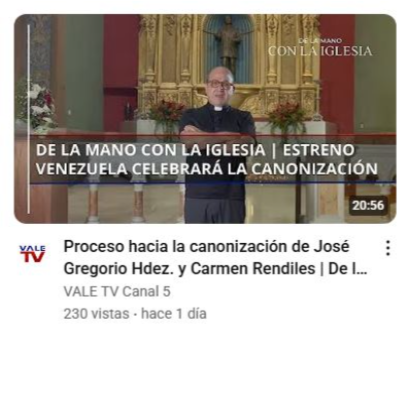 Origen: Venevision Fecha: 9 de junio de 2023 Programa: Noticiero Venevision: Camino a la Santidad (Beatos vene...