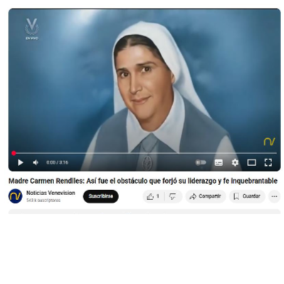 Noticiero Venevision: Madre Carmen Rendiles será elevada a los altares como Beata el próximo 16 de j