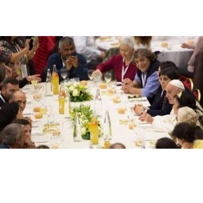 Mientras que para el rico es como si fuera invisible, para nosotros es alguien conocido y casi familiar, tiene un rostro; y, como tal, es un don, un tesoro de valor incalculable, un ser querido, amado, recordado por Dios, aunque su condición concreta sea la de un desecho humano (cf. Homilía, 8 enero 2016).