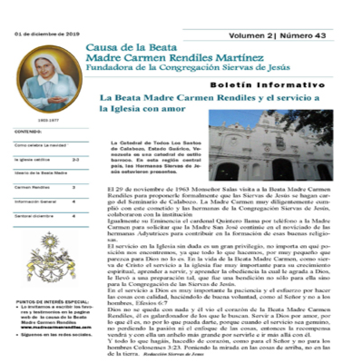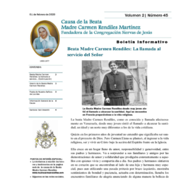 Boletín MCR 45: Beata Madre Carmen: La llamada al servicio del Señor