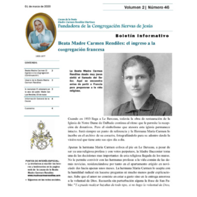 Boletín MCR 46: Beata Madre Carmen Rendiles: El ingreso a la congregación francesa