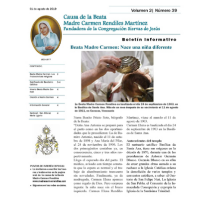Boletín MCR 39: Beata Madre Carmen: Nace una niña diferente