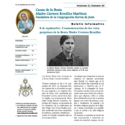 Boletín MCR 40: Beata Madre Carmen 8 de septiembre de 1929