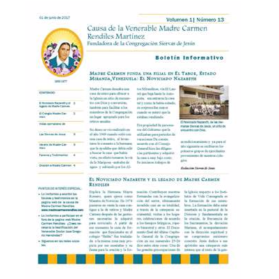 Boletín MCR 13: Madre Carmen funda una filial en El Tabor, Venezuela