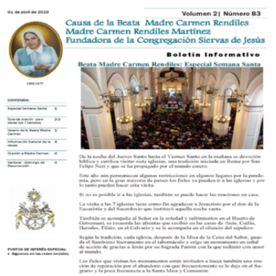Boletín MCR 83: Beata Madre Carmen Rendiles: Semana Santa