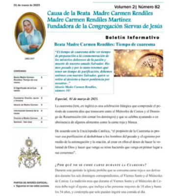 Boletín MCR 82: Beata Madre Carmen Rendiles: Tiempo de Cuaresma