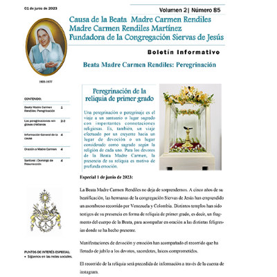 Boletín MCR 85: Beata Madre Carmen Rendiles: Peregrinación