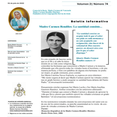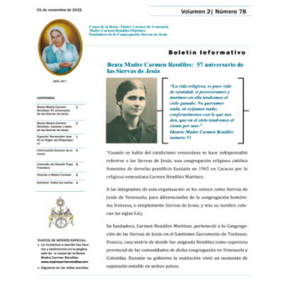 Boletín MCR 78: Beata Madre Carmen Rendiles: 57 aniversario de las Siervas de Jesús