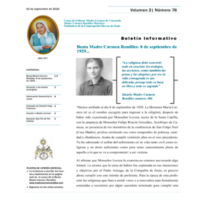 Boletín MCR 76: Beata Madre Carmen Rendiles: 8 de septiembre de 1929