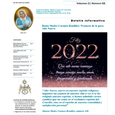 Boletín MCR 68: Beata Madre Carmen Rendiles: Promesa de fe para año nuevo