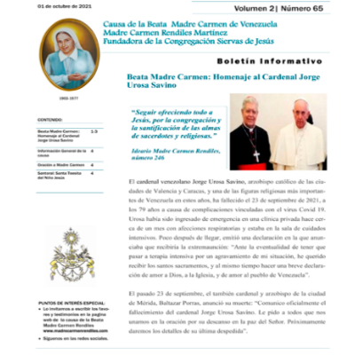 Boletín MCR 65: Beata Madre Carmen: Homenaje al Cardenal Jorge Urosa Savino