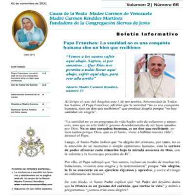Boletín MCR 66: Papa Francisco la santidad no es una conquista humana