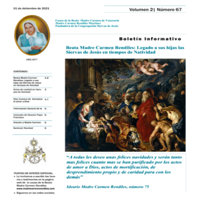 Boletín MCR 67: Beata Madre Carmen Rendiles: Legado a sus